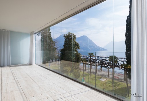 Dzięki zastosowaniu takiego rozwiązania uzyskujemy doskonały efekt wizualny tkaniny która prawie dotyka do sufitu, bez żadnych widocznych szyn czy zawiesi.
