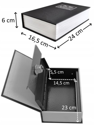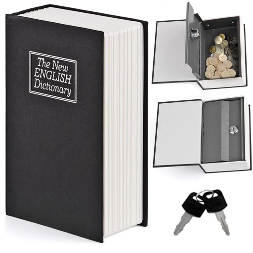 Kasetka sejf w kształcie książki, słownika języka angielskiego. Doskonały na kosztowności, pieniądze lub dokumenty. Można również w niej schować leki przed pociechami. Sejf jest świetnie ukryty w realistycznie wyglądającym słowniku - książce.