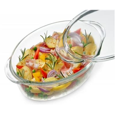 Szklane naczynie owalne z pokrywą zostało wykonane z wysokiej jakości szkła żaroodpornego, które jest odporne na działanie temperatur od -40°C do 300°C i przeznaczone do kontaktu z żywnością. Szkło SIMAX posiada dużą odporność na czynniki chemiczne; jest gładkie i nieporowate, idealnie przezroczyste oraz odporne na korozję. Naczynie ma pojemność 3,6 L, ma uniwersalne zastosowanie – do pieczenia, duszenia, zapiekania dań. Idealne do przygotowania zdrowych potraw dla całej rodziny.