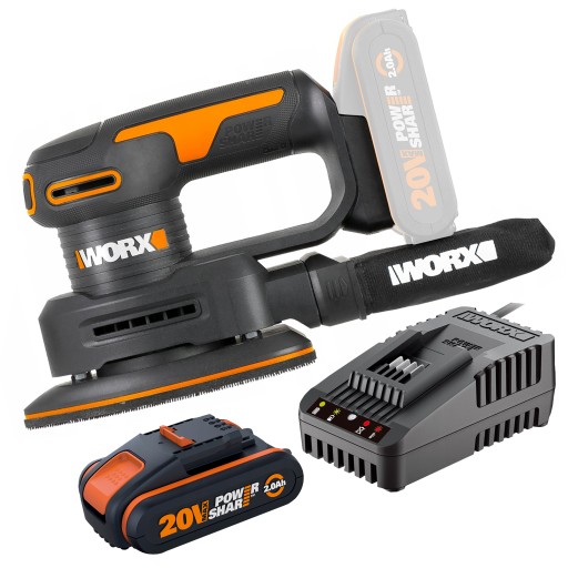 Szlifierka oscylacyjna WORX WX822.9 w zestawie z akumulatorem WA3551 20V 2.0Ah Power Share i ładowarką WA3880.