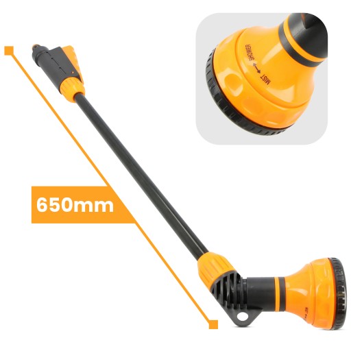Aż cztery opcje intesywności - od punktowego do delikatnej mżawki - pozwalają na dostosowanie parametrów strumienia do potrzeb danej grupy roślin. Lanca pozwala na regulację zarówno ciśnienia, jak i poziomu rozproszenia strumienia.
