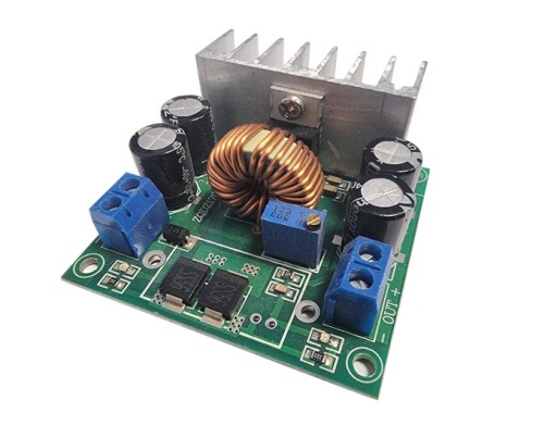 Przetwornica obniżająca napięcie wejściowe z zakresu 7V - 40V do napięcia wyjściowego regulowanego za pomocą potencjometru z zakresu 1.2V - 35V.