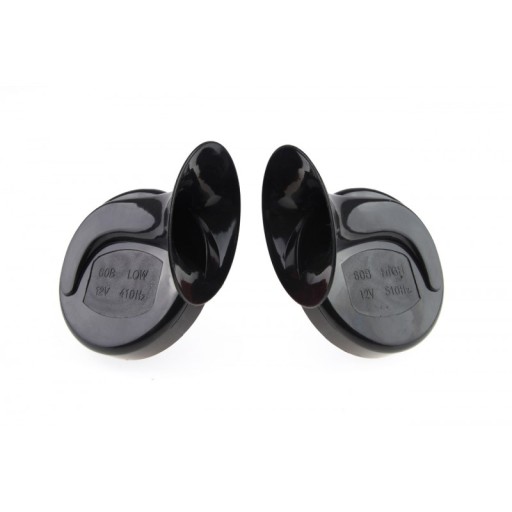 Klaksony dwutonowe typu fanfara czarne. Klaksony nadają się do masywniejszych pojazdów z pewnością dobrze przyozdobią każdy pojazd. Produkt bardzo dobrej jakości.