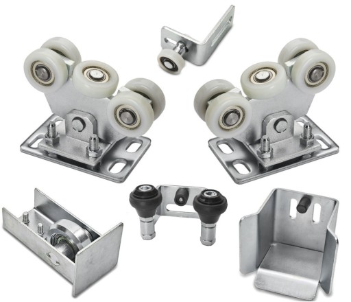 Komplet wózków z akcesoriami do bramy przesuwnej polskiej marki WDB to zestaw precyzyjnie dopasowanych elementów, wykonanych z materiałów najwyższej jakości, o podwyższonej odporności na ścieranie i uszkodzenia mechaniczne, gwarantujący wieloletnią i bezawaryjną pracę bramy.
