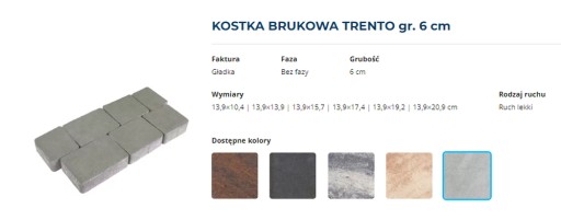 KOSTKA BRUKOWA TRENTO 6 cm SZARY