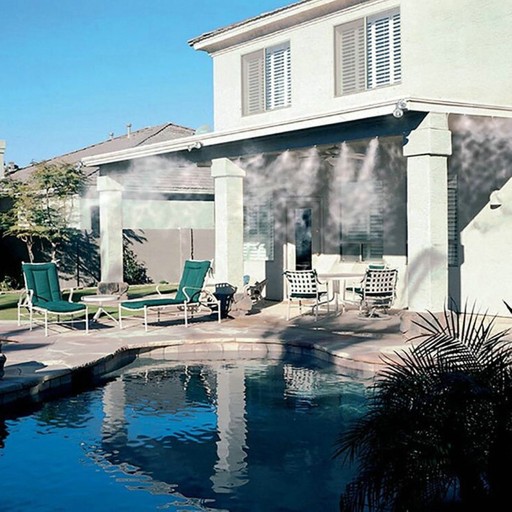 Mgiełka wodna idealnie sprawdza się w upalne dni na tarasach, balkonach, czy przywieszona do parasoli ogrodowych. Po podłączeniu do źródła wody, z dysz rozpylana jest delikatna, orzeźwiająca mgiełka, która pozwala schłodzić otoczenie o około 10°C. Dodatkowo odstrasza ona różnego rodzaju insekty i owady. Woda z dysz sączy się powoli, co nie doprowadza do za dużego zużycia wody, a tym samym dzięki umiarkowanej intensywności nie tworzy mokrych plam czy szkód.