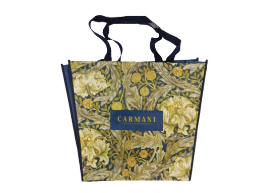 Torba wykonana z tworzywa sztucznego zdobiona ornamentami. Świetnie sprawdzi się jako torba na zakupy.