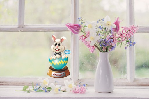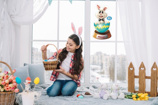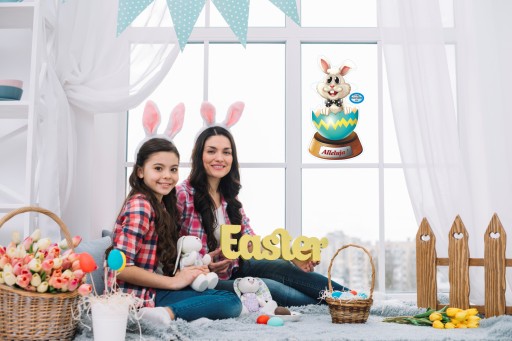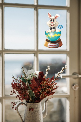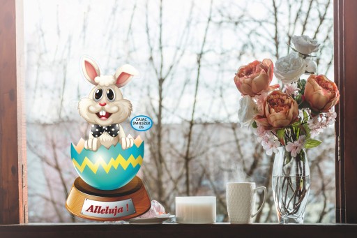NAKLEJKA WIELKANOCNA NA OKNO ZAJĄCZEK ŚMIESZEK 05A
