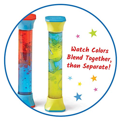 Zestaw tub sensorycznych pomaga dzieciom skupić uwagę i radzić sobie z emocjami. Każda klepsydra oferuje relaksujące doświadczenie, gdy potrząsa się nią w celu wymieszania kolorów, a następnie obserwuje, jak kolory powoli rozdzielają się z powrotem do swoich oryginalnych barw. Łatwe do uchwycenia tuby z kwadratowymi podstawami sprawiają, że dzieci mogą używać ich w pionie i poziomie. Zawartość klepsydr jest bezpiecznie zamknięta. Zestaw zawiera przewodnik z aktywnościami.