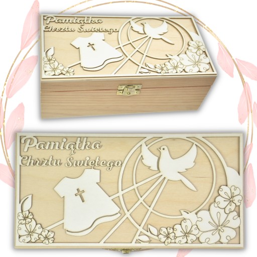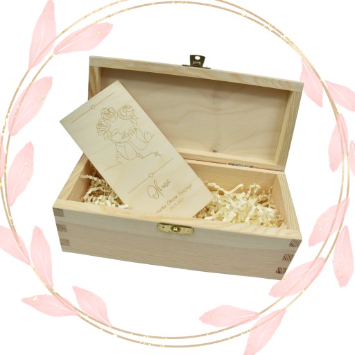- Pudełko ozdobne, drewniane o wymiarach: 22 x 10,70 x 8,40 cm.