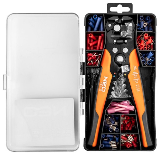 Praktyczny oraz automatyczny ściągacz izolacji z czołowym typem szczypiec oraz zestawem konektorów 230 sztuk od marki NEO. Narzędzie posiada wytrzymałe szczęki, wykonane jest z wysokiej jakości stali Cr12MoV, o twardości 52-58 HRC. Wyposażone dodatkowo w obcinak kabli, umożliwia wygodne skracanie przewodów. Uchwyt z metalu oraz tworzywa sztucznego zapewnia ergonomiczne wrażenia oraz ułatwia pracę. Korpus ze stali A3 wpływa na długowieczność narzędzia. Zestaw oferuje 230 elementów w praktycznym pudełku: