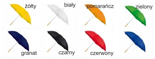 - Pakowany w foliową torbę. Logotyp umieszczamy na brycie parasola.