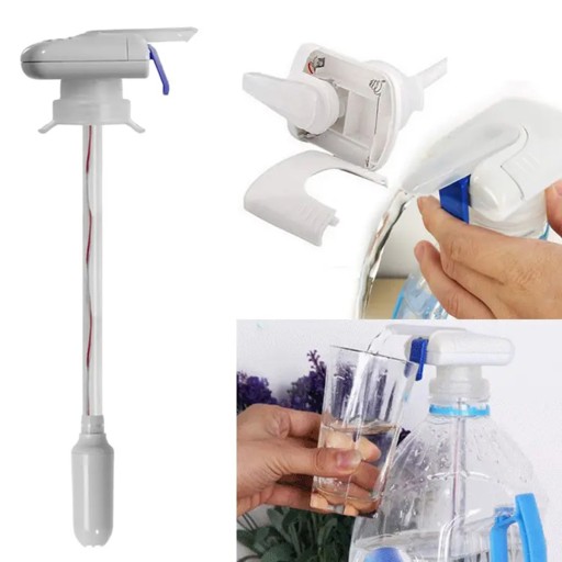Automatyczny dyspenser do wody i napojów. Umożliwia nalewanie wody z wielkich i niewygodnych butli o dużej pojemności do bardziej kompaktowych butelek czy naczyń. Nie wymaga zasilania z sieci elektrycznej (zasilany za pomocą 2 baterii typu AA). Kompaktowe wymiary ułatwiają dopasowanie dystrybutora do ujścia butli (o średnicy do 50 mm). Wysunięta dysza oraz przycisk aktywowany przyłożeniem szklanki ułatwia nalewanie płynu. Długa rurka zasysająca oraz wysoka wydajność przyspieszają pompowanie.