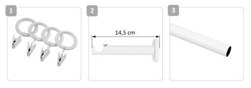 Aby dobrać prawidłowy rozmiar karnisza zmierz szerokość wnęki okiennej i dodaj 40-60 cm (po 20-30 cm na każdą stronę). Dzięki temu firanka lub zasłona będzie nachodzić na ścianę, tworząc dopełnienie wystroju wnętrza. Wsporniki powinny być zamontowane od wnęki okna o około 15 cm. Podany w aukcji rozmiar karnisza jest długością samej rurki, zakończenia ozdobne dodatkowo przedłużają karnisz w zależności od wybranego modelu.