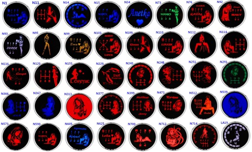 Przykładowe wzory są ponumerowane i są niewielką częścią jaką posiadamy do pokazania , na podstawie tych przykładów możemy wstawić twoje napisy np imię ,nick , zmieniać układy biegów dowolnie modyfikować tworzyć wzory pod zamówienie w tej samej cenie zakupu