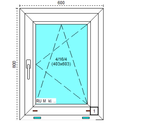 - Szklenie: Pakiet 2 szybowy: 4/16/4 argon Ug= 1,1Wm2/K