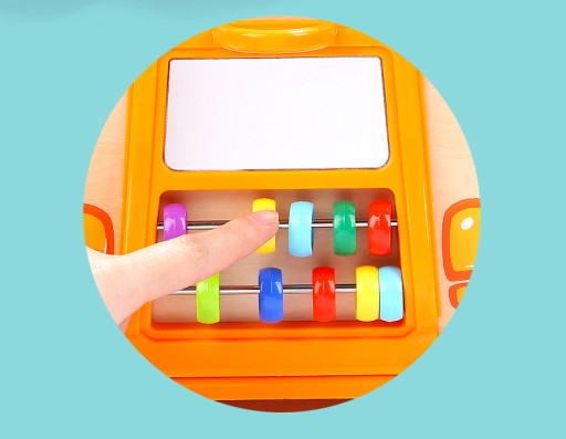 6. Tylna część to także lusterko oraz koraliki ( liczydło), które nie tylko doskonale zajmują czas ale uczą cierpliwości, dokładności oraz wspomagają koordynację wzrokowo-ruchową.