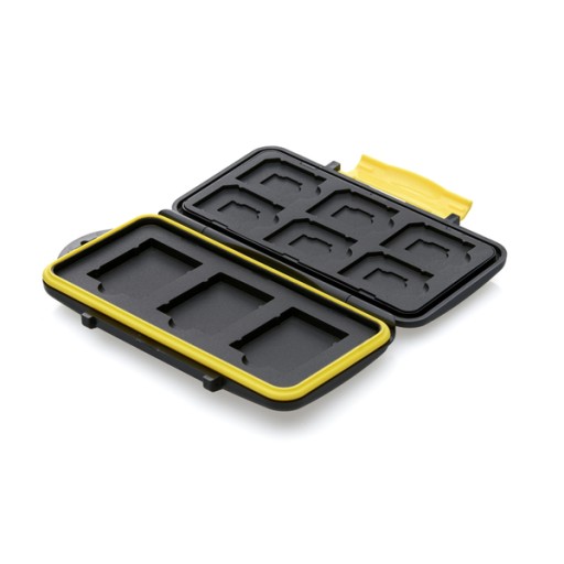 Praktyczny pojemnik na karty pozwoli posegregować, zabezpieczyć i łatwo transportować nośniki danych używane do rejestracji zdjęć i video oraz nagrywania innych materiałów. Ten model pomieści 6 kart SD i 3 karty XQD , 6 nośników microSD. To poręczne etui wykonane jest z bardzo wytrzymałego tworzywa sztucznego i wyposażone w gumowe wykończenie. Dysponuje też ergonomicznym i solidnym zapięciem. Jest lekkie (masa to zaledwie 150 g) oraz odporne na wodę i wstrząsy. Ma też kompaktowe rozmiary (14 × 7,5 × 2,5 cm) - jest niewiele większe od dłoni.