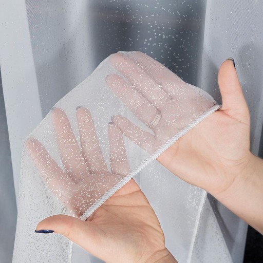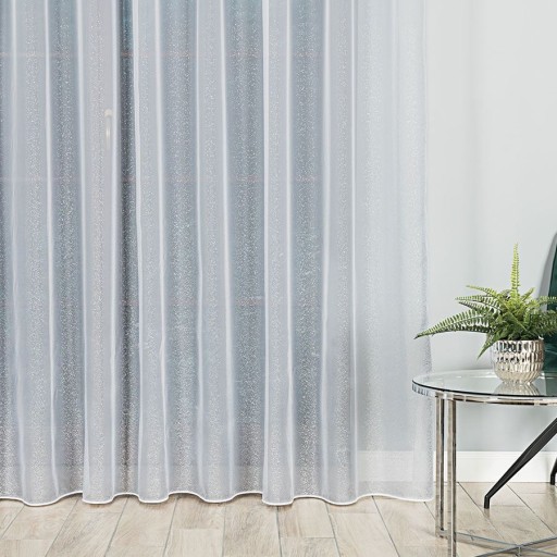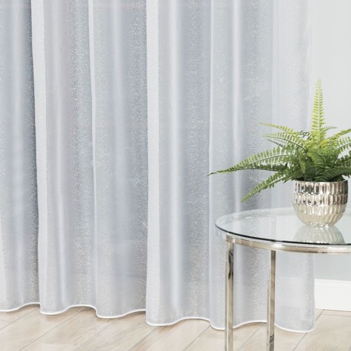 Przedmiotem sprzedaży jest gładka nowoczesna firana ze srebrnym zdobieniem
