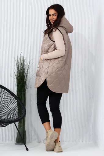 ЖИЛЕТ ЖЕНСКИЙ, СТЕГАНЫЕ РУКАВА, ДЛИННЫЙ КАПЮШОН, КОМФОРТНЫЙ, БЕЖЕВЫЙ 62 11XL