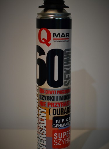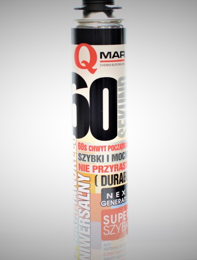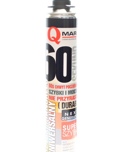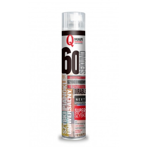 Znacznie przyśpiesza wykonanie prac: chwyt początkowy już po 60 sekundach, a pełne utwardzenie uzyskuje już po 24h. Szybki pianoklej uniwersalny 60 SEKUND wykazuje doskonałą przyczepność do typowych materiałów konstrukcyjnych takich jak: mury z cegły, pustaki, bloczki silikatowe, płyty G-K, płyty OSB, beton, tynki, a także drewno, metale, styropian, płyty XPS, twarde PVC i sztywne piany PUR.