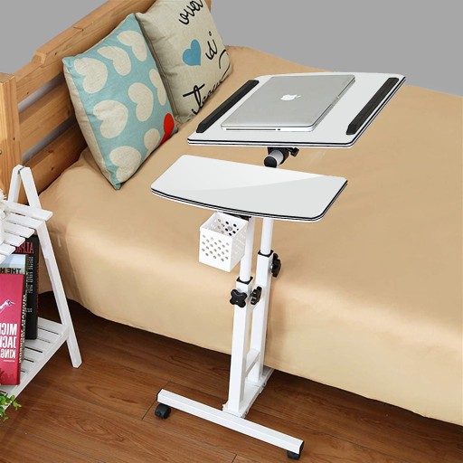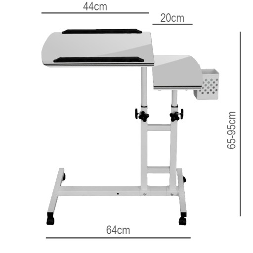 Stolik wyposażony jest w dwa blaty, jeden na laptopa, drugi na myszkę lub kawę. Każdy blat można obracać niezależnie od siebie. Blat na laptopa oraz myszkę obraca się o 360 stopni.