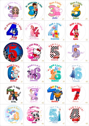 НАКЛЕЙКИ на день рождения 1 2 3 4 5 6 7 8 с именами 4,5 см 6 шт. персонализированные