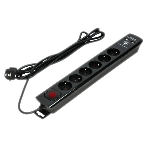 LISTWA PRZECIWPRZEPIĘCIOWA ORNO OR-AE-13163/B/3M umożliwia rozdzielenie zasilania na 6 urządzeń elektrycznych o poborze mocy łącznie do 2300W. Zasilanie można wyłączyć podświetlanym, dwutorowym wyłącznikiem głównym. Posiada także 2 wejścia USB.