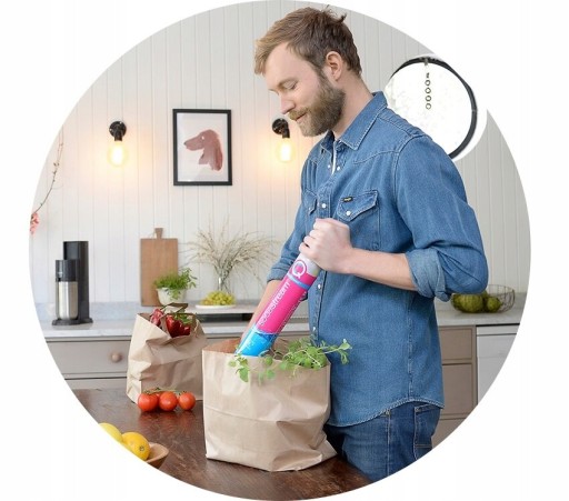 Różowy cylinder SodaStream pasuje do saturatorów z różową dźwignią. Pozwala on na szybkie stworzenie świeżego, bąbelkowego napoju o wybranym poziomie nagazowania w Twoim domu. Zacznij być EKO już dzisiaj i wyeliminuj nawet 1769 butelek plastikowych z SodaStream.* Zostań Streamerem i przyczyń się do eliminacji do 78 miliardów plastikowych butelek jednorazowego użytku do 2025 roku. Zacznij bąbelkować już dziś!
