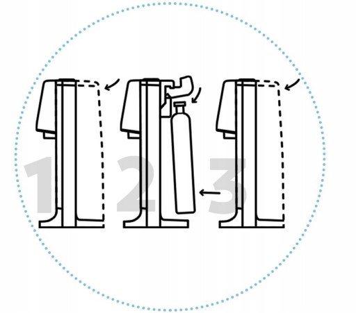 Montaż różowego cylindra z gazem w 3 prostych krokach: 1. Ustaw ekspres SodaStream na stabilnej, płaskiej powierzchni w pozycji pionowej i zdejmij jego tylną obudowę. 2. Umieść cylinder z gazem w miejsce montażu, zaczynając od dołu. Następnie opuść różową dźwignię Quick Connect. 3. Załóż tylną obudowę ekspresu, aż usłyszysz kliknięcie. Gotowe! Teraz możesz bąbelkować.