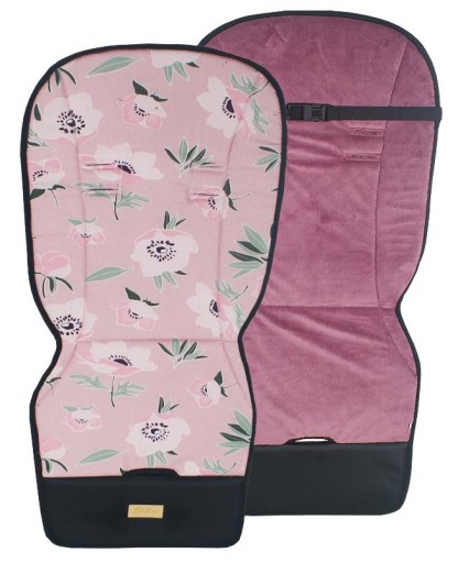 Dwustronna wkładka jest wykonana z jednej strony z przepięknej wzorzystej lub gładkiej tkaniny bawełnianej a z drugiej z mięciutkiego, milutkiego w dotyku velvetu/minky. W każdej chwili możesz obrócić i zmienić wygląd wózka spacerowego ciesząc się nowym efektem