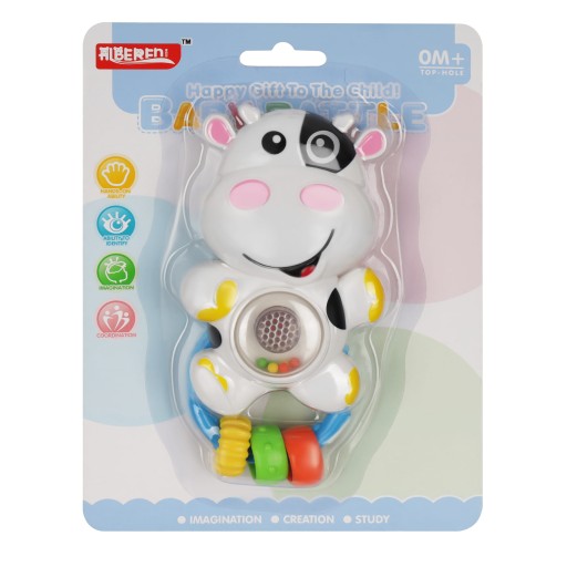 Grzechotka ma kształt uroczej i uśmiechniętej krówki, która będzie towarzyszyć maluchowi podczas zabawy. Wszystkie dzieci uwielbiają zwierzątka. Zabawka z pewnością zyska sympatię każdej pociechy.