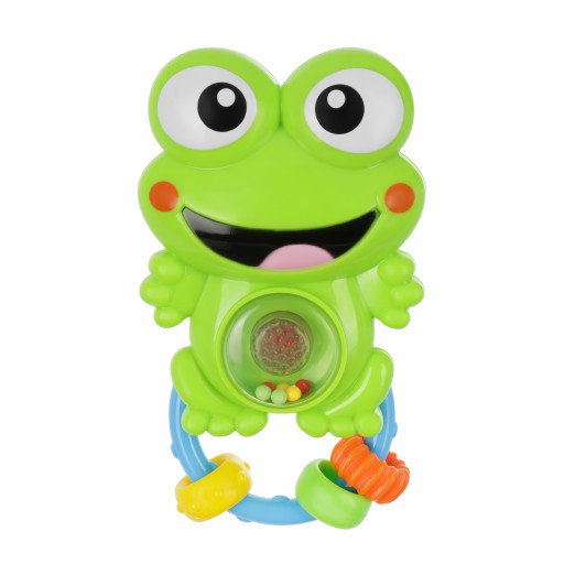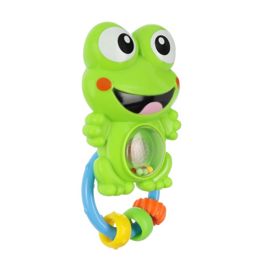 Grzechotka ma kształt uroczej i uśmiechniętej żabki, która będzie towarzyszyć maluchowi podczas zabawy. Wszystkie dzieci uwielbiają zwierzątka. Zabawka z pewnością zyska sympatię każdej pociechy.