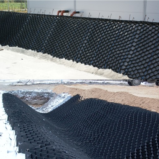 Kruszywo zamknięte w poszczególnych komórkach geosiatki komórkowej i zagęszczone do odpowiednich wskaźników zagęszczenia przyczynia się nawet do kilkunastokrotnego wzrostu nośności podłoża.