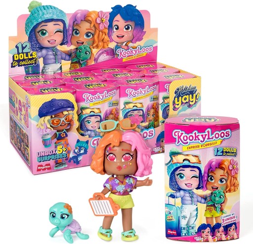 W kolekcji czeka 12 zupełnie nowych laleczek, a wśród nich Supernova, czyli lalka VIP , która ma dwa niezwykłe stroje i jest gotowa, by zabrać Cię do gwiazd! W opakowaniu czekają saszetki-niespodzianki! Otwórz pudełko i odkryj, która KookyLoos ukrywa się w środku, jakie nosi ubranka, do której ekipy należy i jakie są dołączone do niej akcesoria. Każdej laleczce jednym kliknięciem można zmienić minkę – wystarczy obrócić buzię! Przygotuj się na świetną zabawę z KookyLoos Holiday Yay!