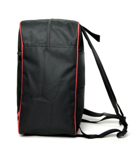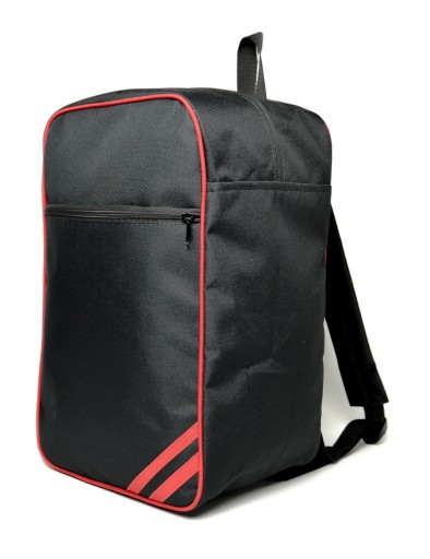 Z tyłu plecaka znajdują się szelki, które pozwalają nosić bagaż podręczny swobodnie na plecach. Plecak wykony jest z miękkiego materiału po wypakowaniu bagaży bez problemu można go złożyć na płasko dzięki czemu zajmuje mało miejsca.