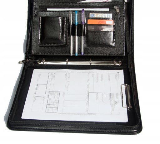 Biwuar zamykany na najwyższej jakości zamek błyskawiczny. Wyposażony jest w segregator-ring zatrzaskowy 4-kółkowy oraz klips na dokumenty (np. CMR,listy przewozowe), kartki itp.