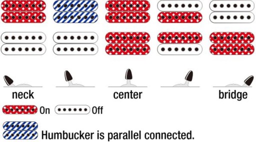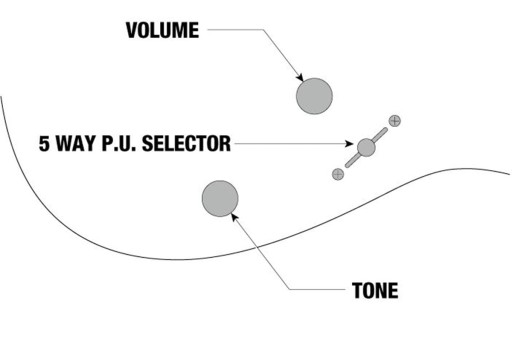 - Przełącznik 5-pozycyjny, 1 x Volume, 1 x Tone