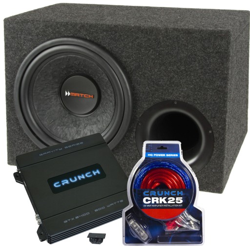 Amatorzy potężniejszego brzmienia będą zainteresowani skrzynią z dwoma głośnikami Match MW12W-D. W tym przypadku uzyskamy impedancję 2 Ohm.