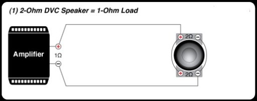 2. połączenie równoległe - uzyskana impedancja 4 Ohm pozwala na zasilenie głośnika wzmacniaczem jednokanałowym dedykowanym do subwooferów.