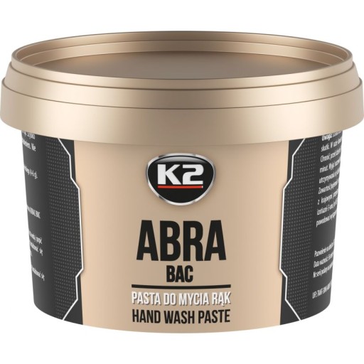 Pasta do mycia rąk K2 ABRA przeznaczona jest do czyszczenia, ochrony i pielęgnacji rąk. Posiada zaawansowaną, nowoczesną recepturę opartą na innowacyjnym ścierniwie, które polepsza właściwości mechaniczne i ułatwia mycie. Dzięki konsystencji, przypominającej delikatną masę plastyczną lub puszyste ciasto, jest wyjątkowo przyjemna w użyciu.