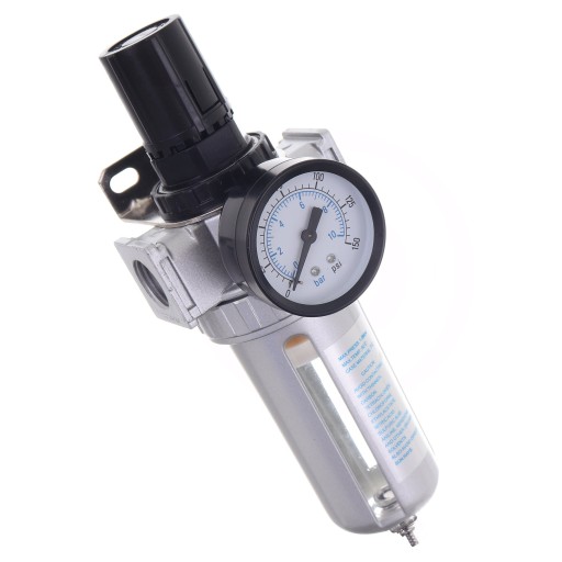 Filtr z reduktorem służy do osuszania i regulacji ciśnienia powietrza. Jest niezbędnym elementem każdej instalacji pneumatycznej. Stosując ten filtr zapobiegasz między innymi; rdzewieniu narzędzi, zaciekom podczas malowania pistoletami lakierniczymi, uszkodzeniom węży itp.