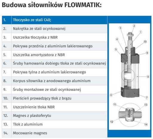 Flowmatik FMS to seria siłowników wykonana według standardu ISO 6431 - ISO 15552