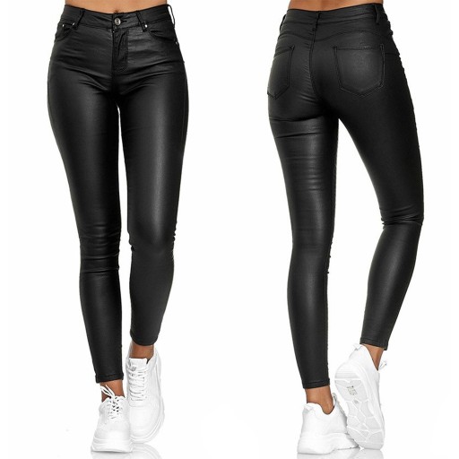 Świetne spodnie woskowane imitującą skórę kolor posiadają średni stan. Świetne do sportowego obuwia ale idealnie też sprawdzą się w połączeniu ze szpilkami, dzięki swojej uniwersalności, pasują niemal do każdej stylizacji. Elastyczny materiał podkreśla kobiecą sylwetkę. Spodnie są dopasowane, rozciągają się. Podkreśl swoje kobiece kształty! Spraw, by Twój codzienny Look był niepowtarzalny. Spodnie po obu stronach posiadają kieszenie.