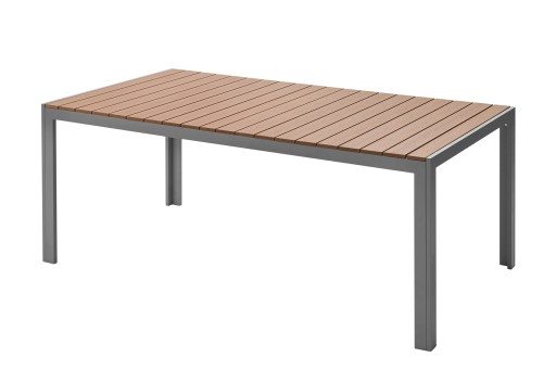 Prostokątny stół ogrodowy z desek kompozytowych WPC i aluminium.