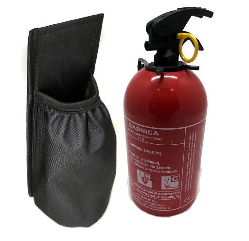 Pokrowiec gaśnicy samochodowej na rzep + Gaśnica proszkowa 1kg produkcja z roku 2024