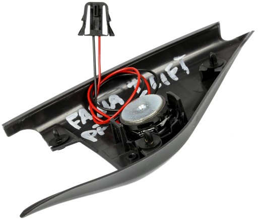 Głośniki wysokotonowe dedykowane do montażu zamiast fabrycznych w osłonie (trójkącie) lusterka samochodów grupy SKODA / VW. Głośniki mają średnicę, która pasuje w miejsce fabrycznego głośnika oraz fabryczną wtyczkę do instalacji głośnikowej Skoda / VW. Nie są to oryginalne głośniki, ale ich średnica pozwala na ich montaż zamiast głośników oryginalnych. Głośniki umieszcza się zamiast fabrycznego na wcisk, a po włożeniu do otworu montażowego należy go tam unieruchomić przy pomocy kropli kleju.
