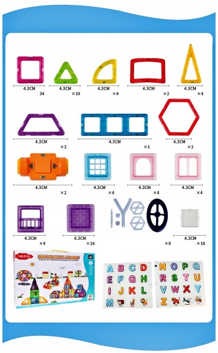 Klocki magnetyczne konstrukcyjne to świetna zabawa dla dziecka, która jednocześnie rozwija kreatywność. Klocki magnetyczne charakteryzują się łatwością łączenia oraz możliwością tworzenia różnych konstrukcji zaczynając od budowli płaskich po konstrukcje 3D. W zestawie znajdują się również koła, co pozwala na budowanie pojazdów oraz samolotów. Klocki na bokach posiadają wbudowane mocne magnesy neodymowe, które z dużą siłą łączą kolejne elementy.