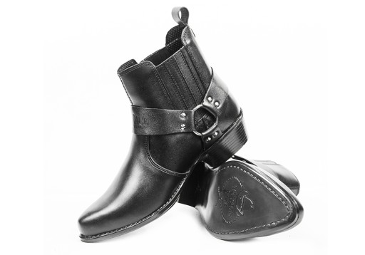 To typowy styl kowbojski. Ścięte obcasy, krótkie cholewy, skóra, klamry. Wspaniały akcent w stroju jeansowym lub motocyklowym.