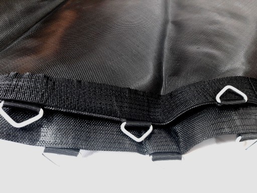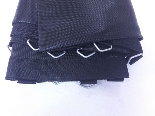 - jak na zdjęciach poniżej. Mata jest wykonana z tkaniny polipropylenowej, wyprodukowanej na licencji USA (gramatura 270g/m.kw.), odpornej na trudne warunki atmosferyczna i promieniowanie słoneczne. Po 10 latach jest tak samo czarna, jak nowa. Jest estetycznie i perfekcyjnie wykonana. Wielokrotny, wzmocniony taśmą szew. Wytrzymałość: 150 kg. Jeśli sprężyny mają 14 - 15 cm ( z haczykami), to mata na pewno będzie pasować. Aukcja dotyczy samej maty - bez osłony sprężyn i siatki.